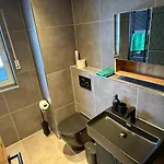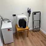 Tot de badkamerfaciliteiten behoren ook een apart toilet en een douche. Een droger en handdoeken zijn inbegrepen voor extra comfort.